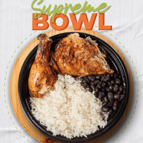 Protein of your choice served with moro rice, beans, sweet plantain tropical salad & almonds.